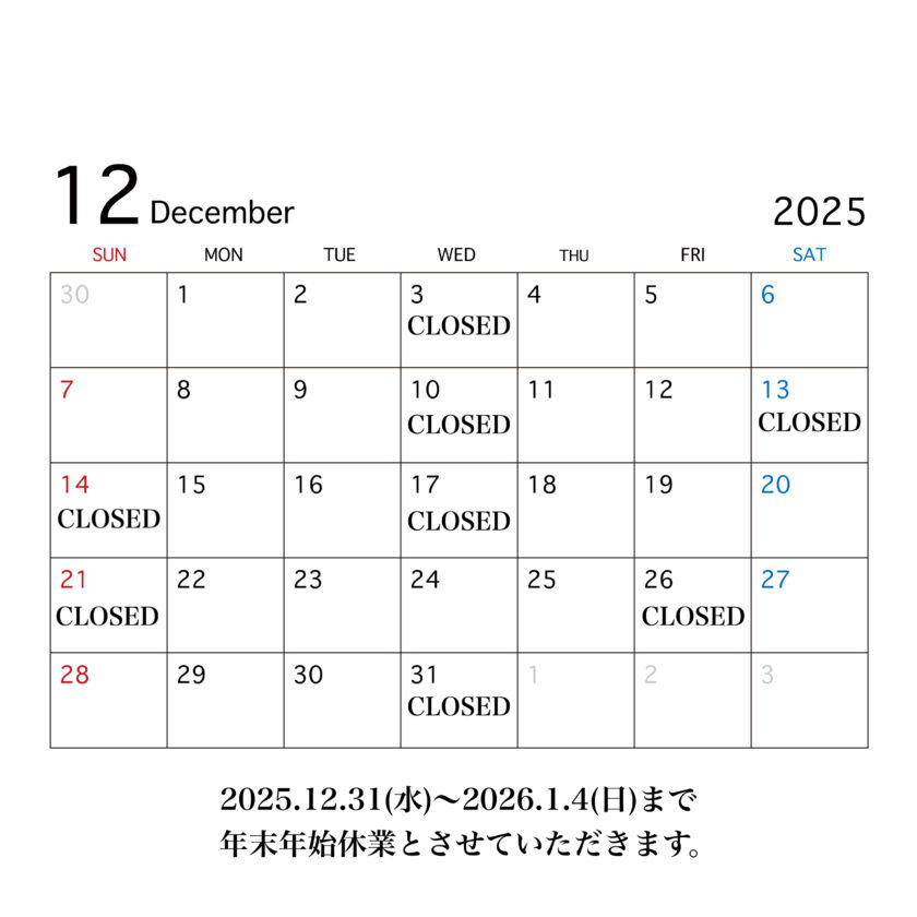 12月休業日のお知らせ 2025/11/29 テーマ:NEWS いつも当店をご愛顧賜りまして誠にありがとうございます。 誠に勝手ながら、12月は下記日程を休業日とさせていただきます。 ご不便をおかけいたしますが、何卒よろしくお願い申し上げます。 12月休業日のお知らせ Wrinkle Free Limited Fair 11月休業日のお知らせ OPTION FAIR ~パターンオーダーシャツ~ 10月休業日のお知らせ Pattern Order Shirt V.I.P FAIR 『2025AW ORDER MADE SUIT FAIR』開催のお知らせ 9月休業日のお知らせ 【8月休業日のお知らせ】 長岡まつり大花火大会に伴う営業時間変更のお知らせ BLOG (59) ACCESSORY (20) SHIRT (11) SUIT (26) NEWS (101) 2020/7